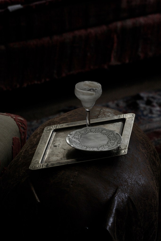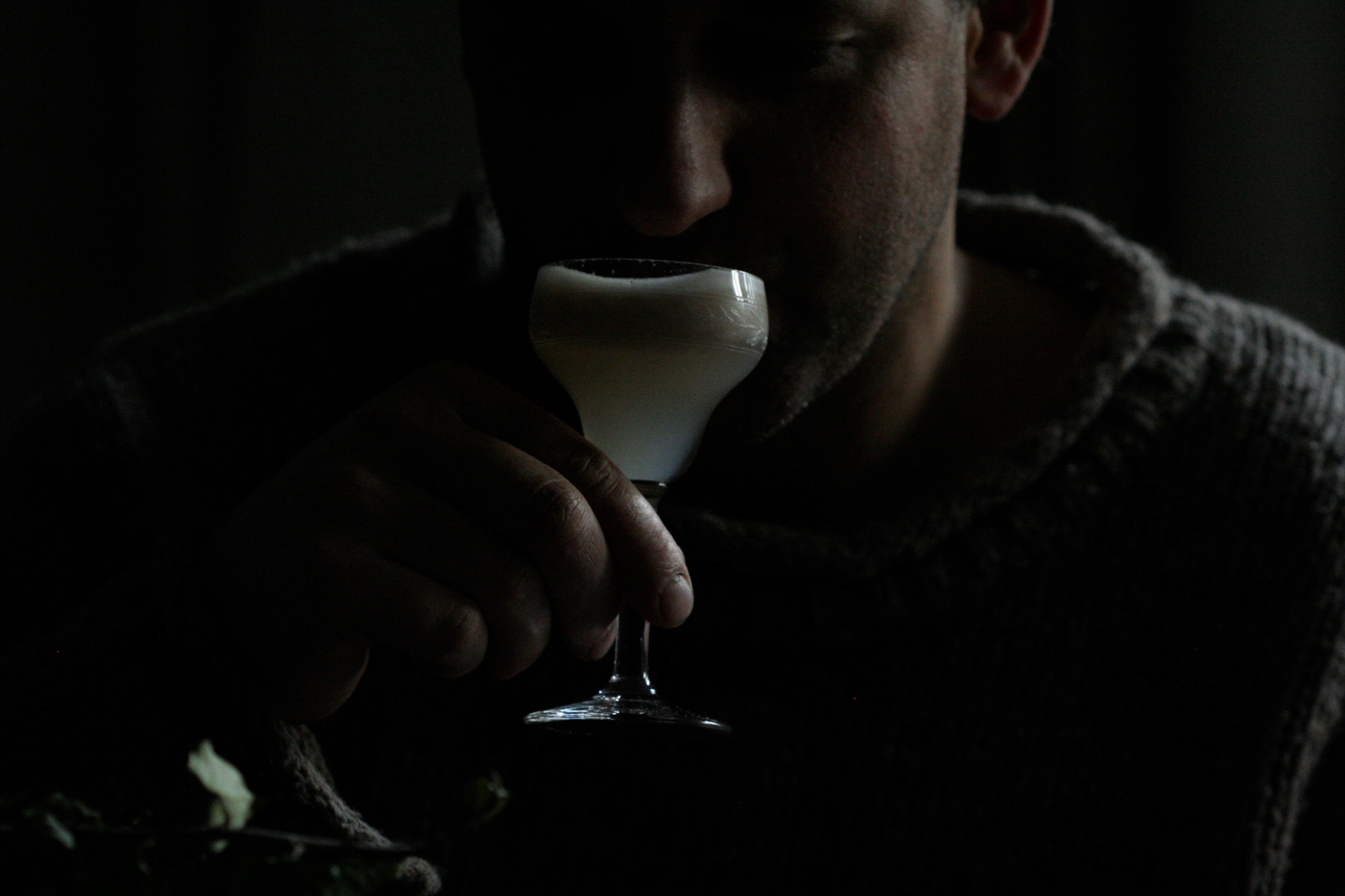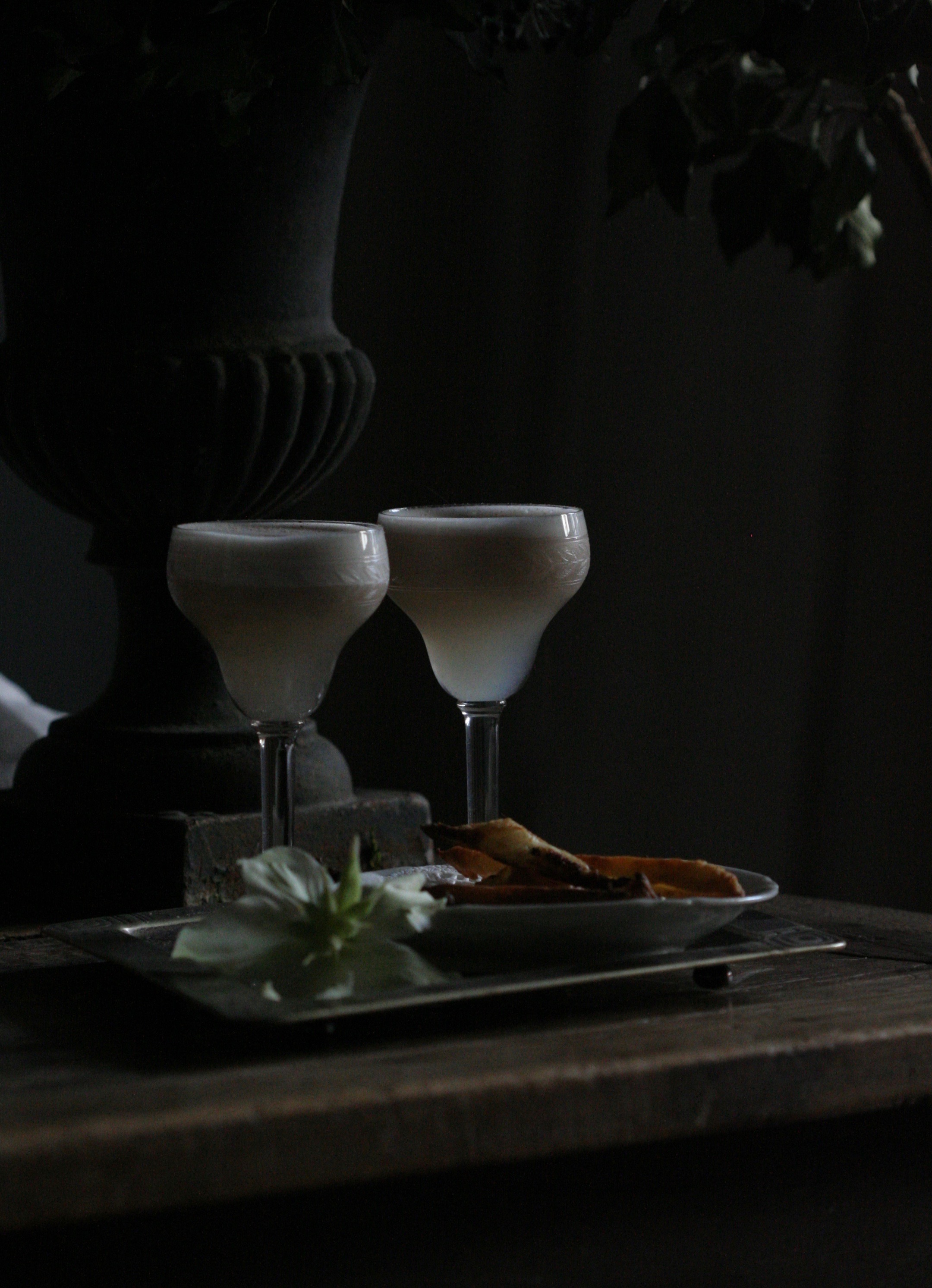 The other day the electrician brought me a tiny bottle of fig liqueur. Homemade, because, he said, he couldn’t eat them all up, the figs in his garden. Just so. The figs and the leaves and the sun. While figs taste of wild honey and sweet cream, the leaves add a rounded freshness, warm and balmy. It’s a sirupy golden soup, tasting of late summer and molten sugar right before the point it’s burnt. I made it into a teeming February cocktail, one you would drink after midnight, when the fire is slowly dying and the outside chill sneaks through the walls into your house. Fig liqueur, yellow ratafia. Almond milk, egg white. A dash of muscat, I will try with Mahlepi once it will have found the way to my kitchen. And a hint of bliss in Monsieur’s half smile.