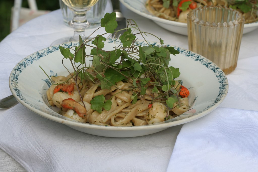 We’ve had ours with scallops fried in olive oil and parsley. And a lady squeeze of lemon before serving. A perfect summer evening treat. And the way to do pasta henceforward.