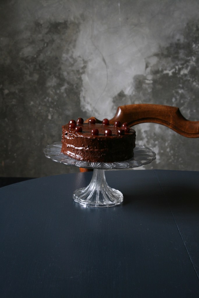 But first I am taking the time to write these few lines and share the recipe for this cake I made my husband a few weeks ago for his birthday. It’s lots of chocolate and lots of tipsy cherries and I think we all liked it very much.