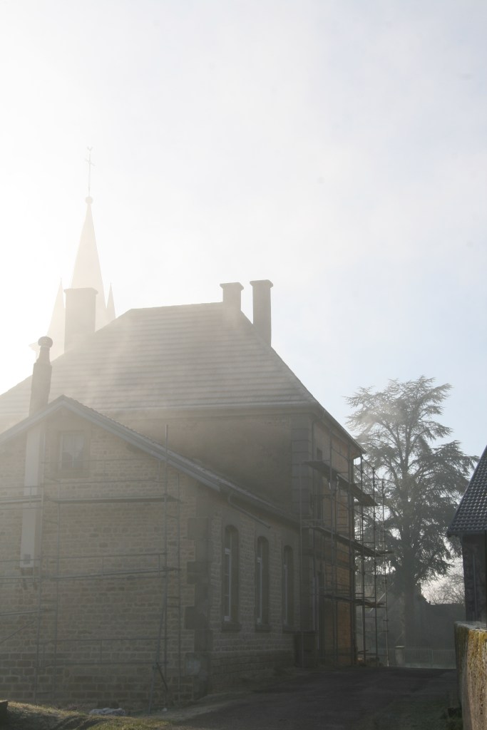 The weather was brilliant all along with a beautifully misty start into the day, I’ve added some photographs of the village further below. As usual, we cooked saucisses montbeliardes, a local sausage specialty, in the mirabelle mesh and ate them later with choucroute and moutarde galore. Yves wife gave us the most pleasant surprise as she made mousse au chocolat specially for us, so delicious, and we had freshly brewed coffee with a sip of newly distilled mirabelle, so clearly we’ve been absolutely spoiled. What a day. Just simple country life, the pleasure of spending time together, eating, laughing, warming our hands on the copper of the alembic in the crisp morning air. Going for a walk to stretch ones legs. Inhale. Exhale. Shutting the crappy big world out if only for a couple of hours.