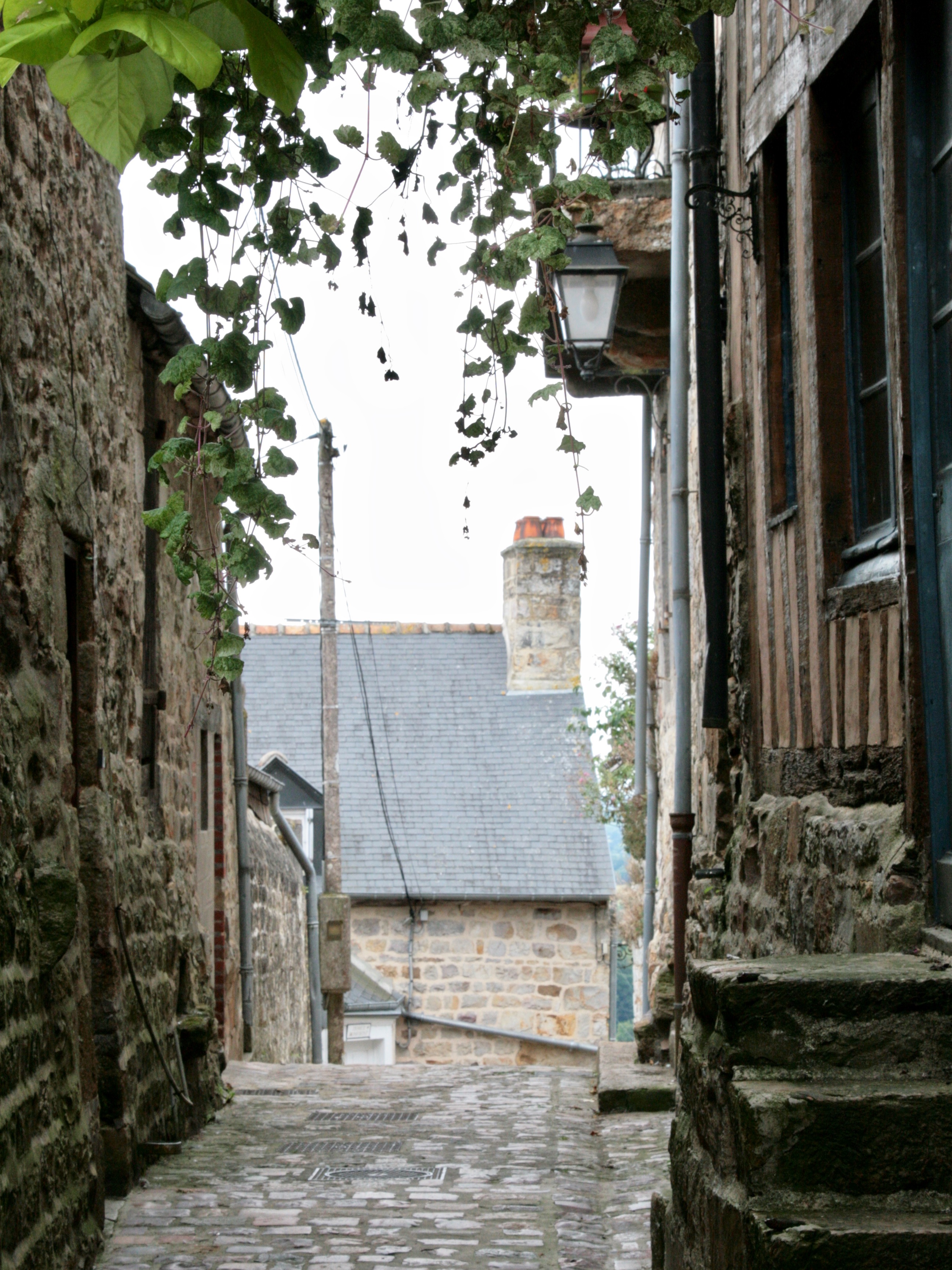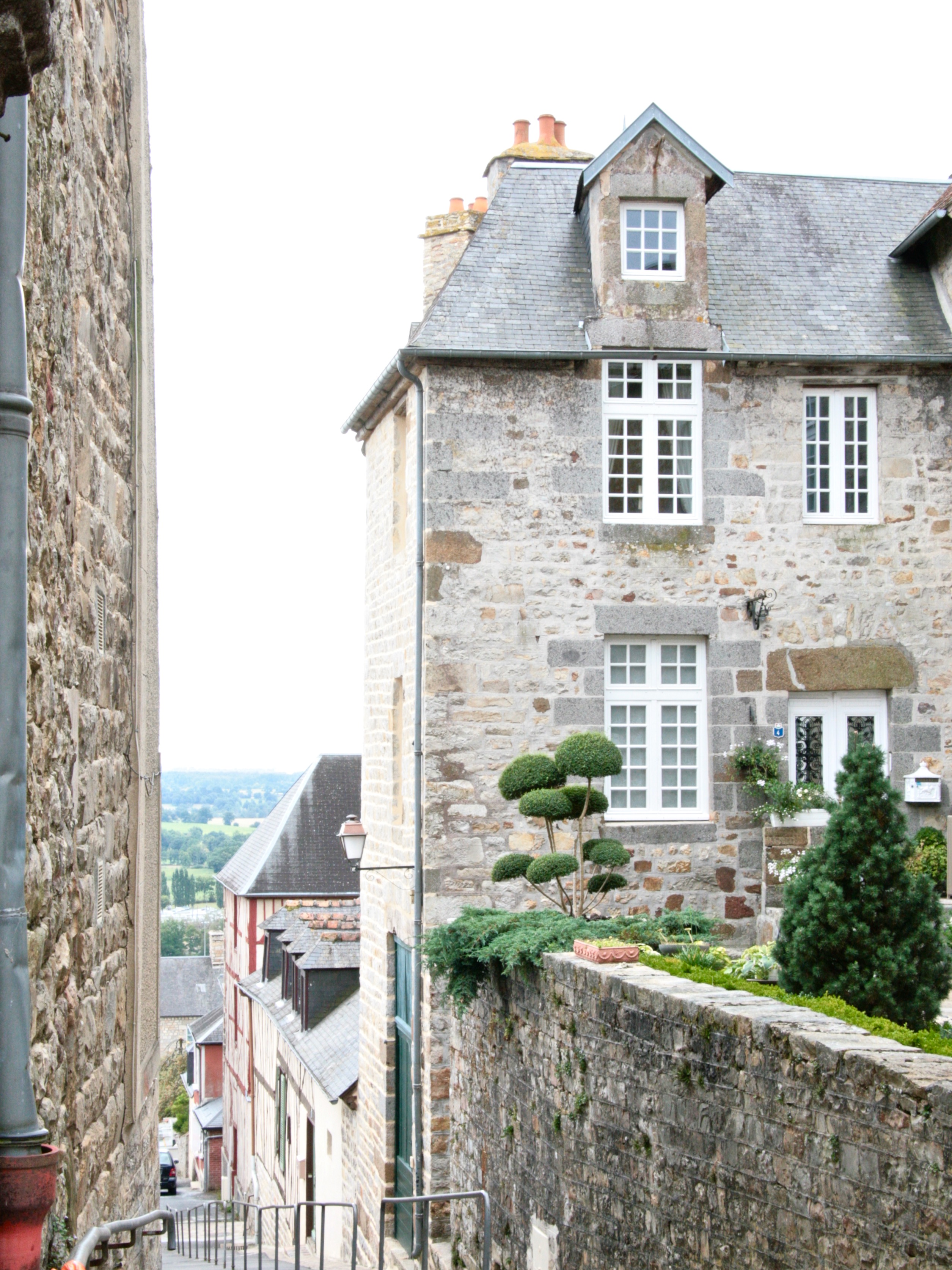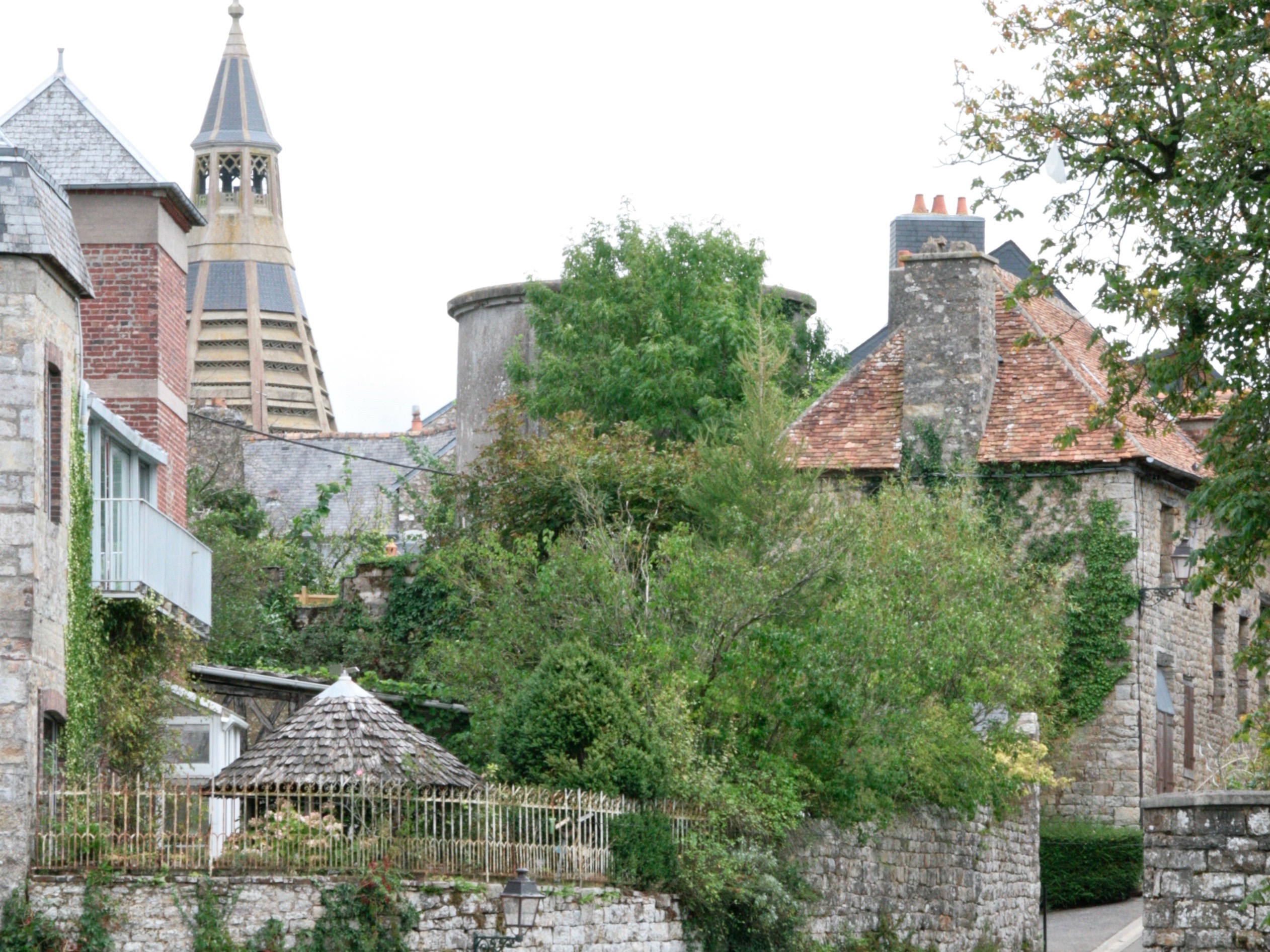The Domfrontais lies between Chartres and Le Mont Saint Michel, and while their northern neighbours distill apples exclusively, in the Domfrontais they have a history of distilling pears too. It’s all green rolling hills and quaint little villages and towns, the prettiest one is Domfront sitting on a steep hill overlooking everything. I remember we had lunch at a little pub on the village place before heading on to the sea last time we visited, the town definitely fell into our I-could-live-here class which means we just loved it. We bought provisions at the local epicerie, some apple and pear wine and a bag of caramels to top it all off and had a picknick later under the apple trees, just before the rain started falling again.