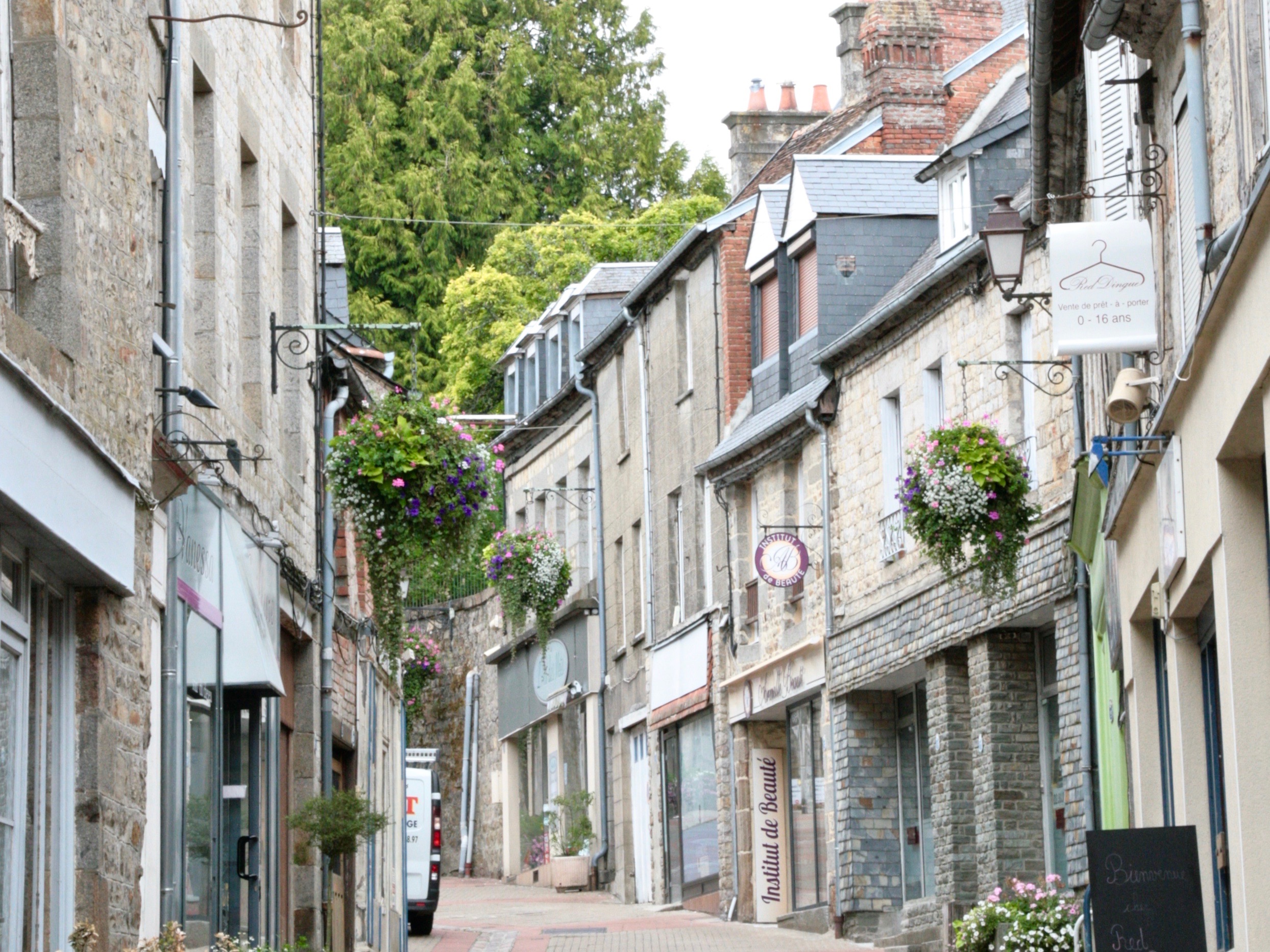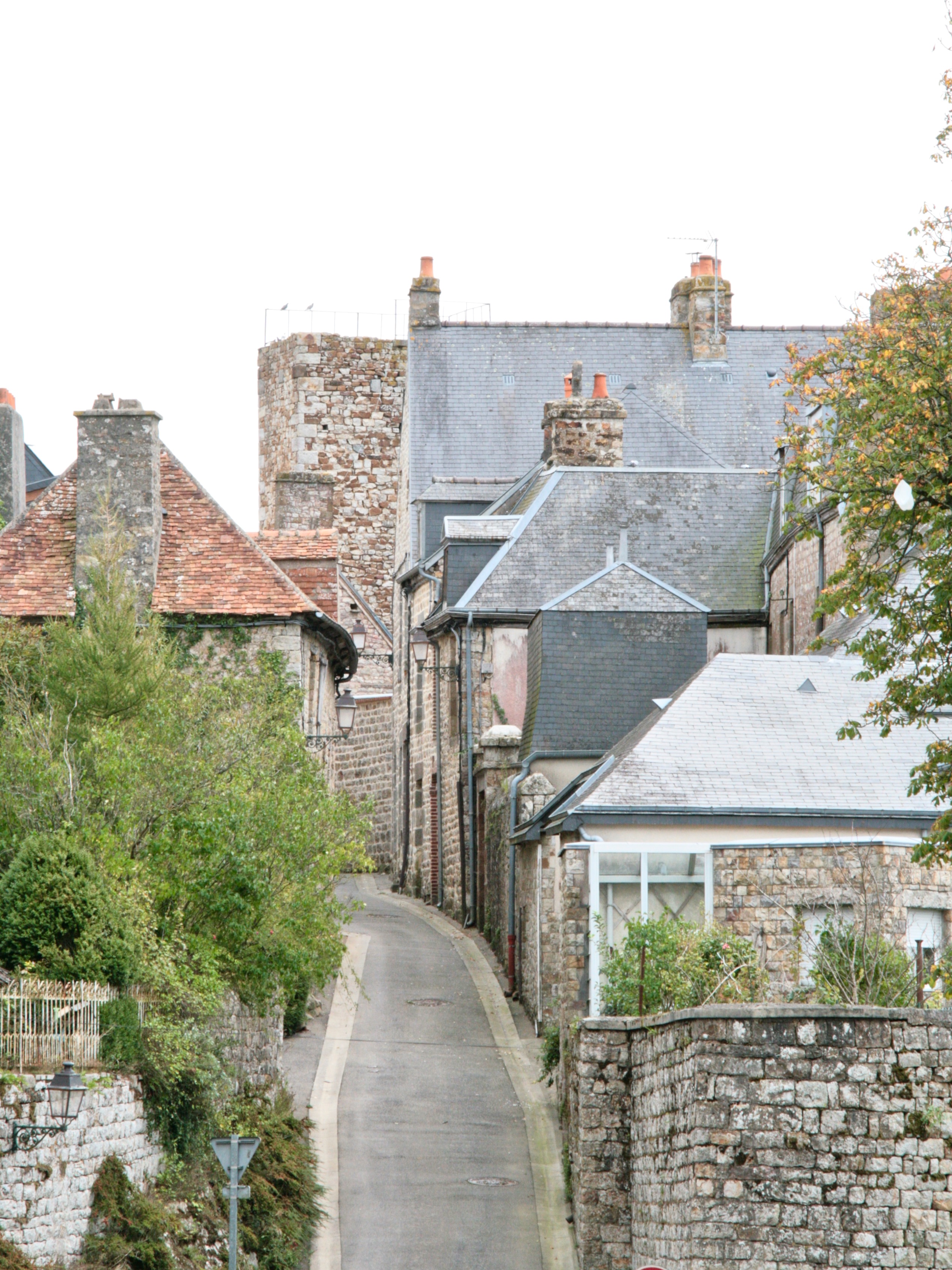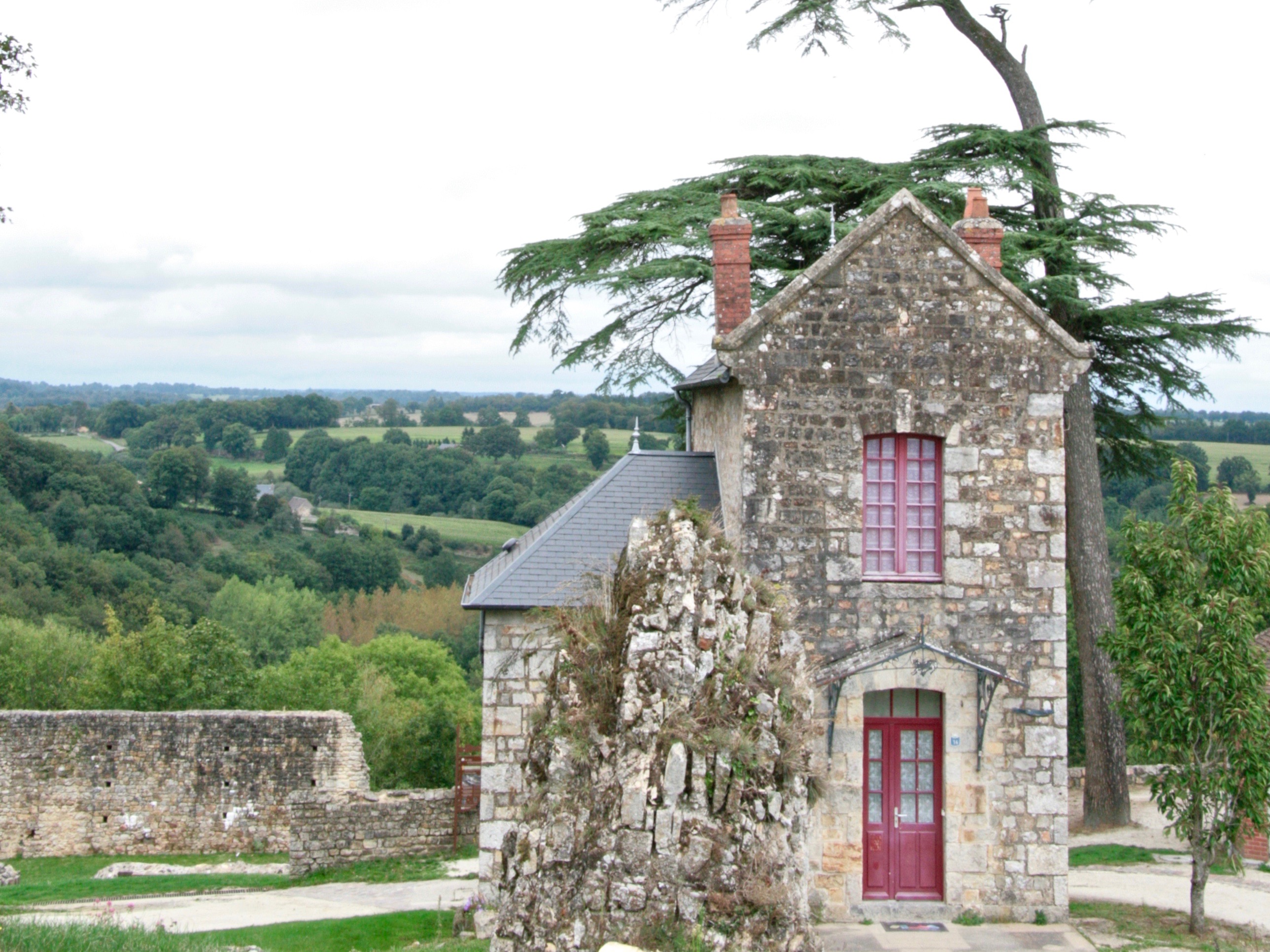 The Domfrontais lies between Chartres and Le Mont Saint Michel, and while their northern neighbours distill apples exclusively, in the Domfrontais they have a history of distilling pears too. It’s all green rolling hills and quaint little villages and towns, the prettiest one is Domfront sitting on a steep hill overlooking everything. I remember we had lunch at a little pub on the village place before heading on to the sea last time we visited, the town definitely fell into our I-could-live-here class which means we just loved it. We bought provisions at the local epicerie, some apple and pear wine and a bag of caramels to top it all off and had a picknick later under the apple trees, just before the rain started falling again.