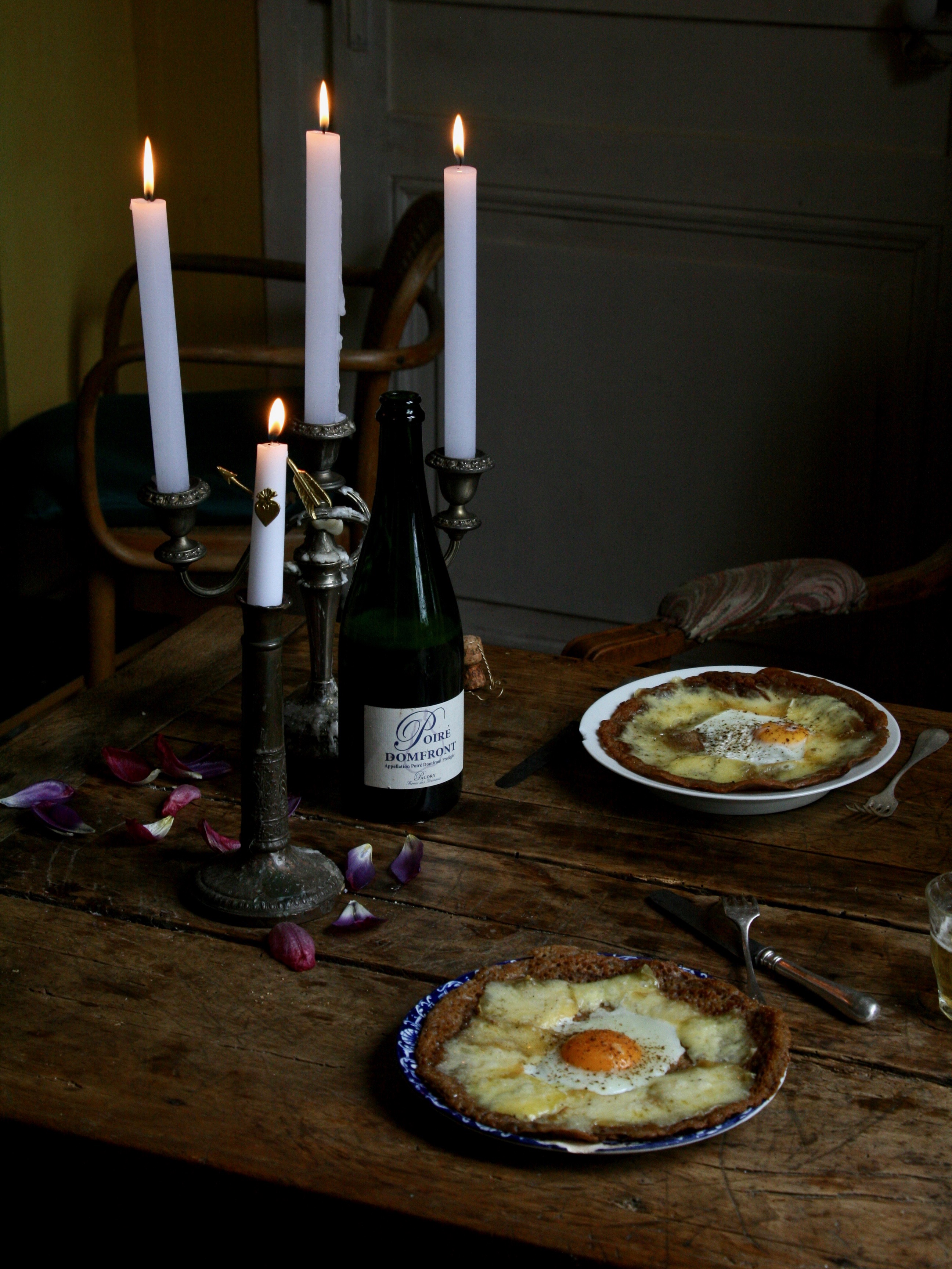 The crèpe shall be eaten by candlelight, no matter what the weather’s like. Also I find it invariably tastes best with apple cider, or even better poiré, which is a pear cider made in the Domfrontais, it’s so incredibly good!