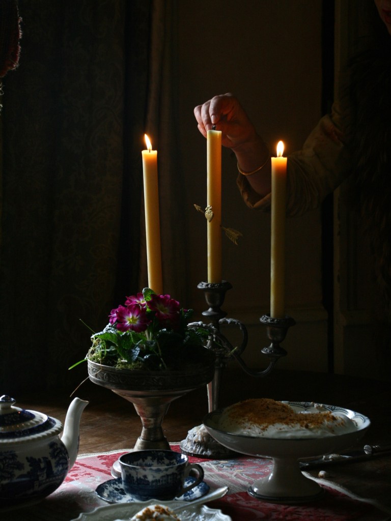 This winter was one of the latter. A seemingly eternal twilight. Now aside from the inconvenience of bone chill, it has it’s charm too, that peculiar gloomy victorian vibe I love so much. So I lit beeswax candles for they say they’re burning brighter, its light the spectrum of the sun. Yet the flame reminds me of the full moon casting silvery shades on a frozen garden in January. The smell a mix of buried flowers and Christmas memories. Very beautiful.