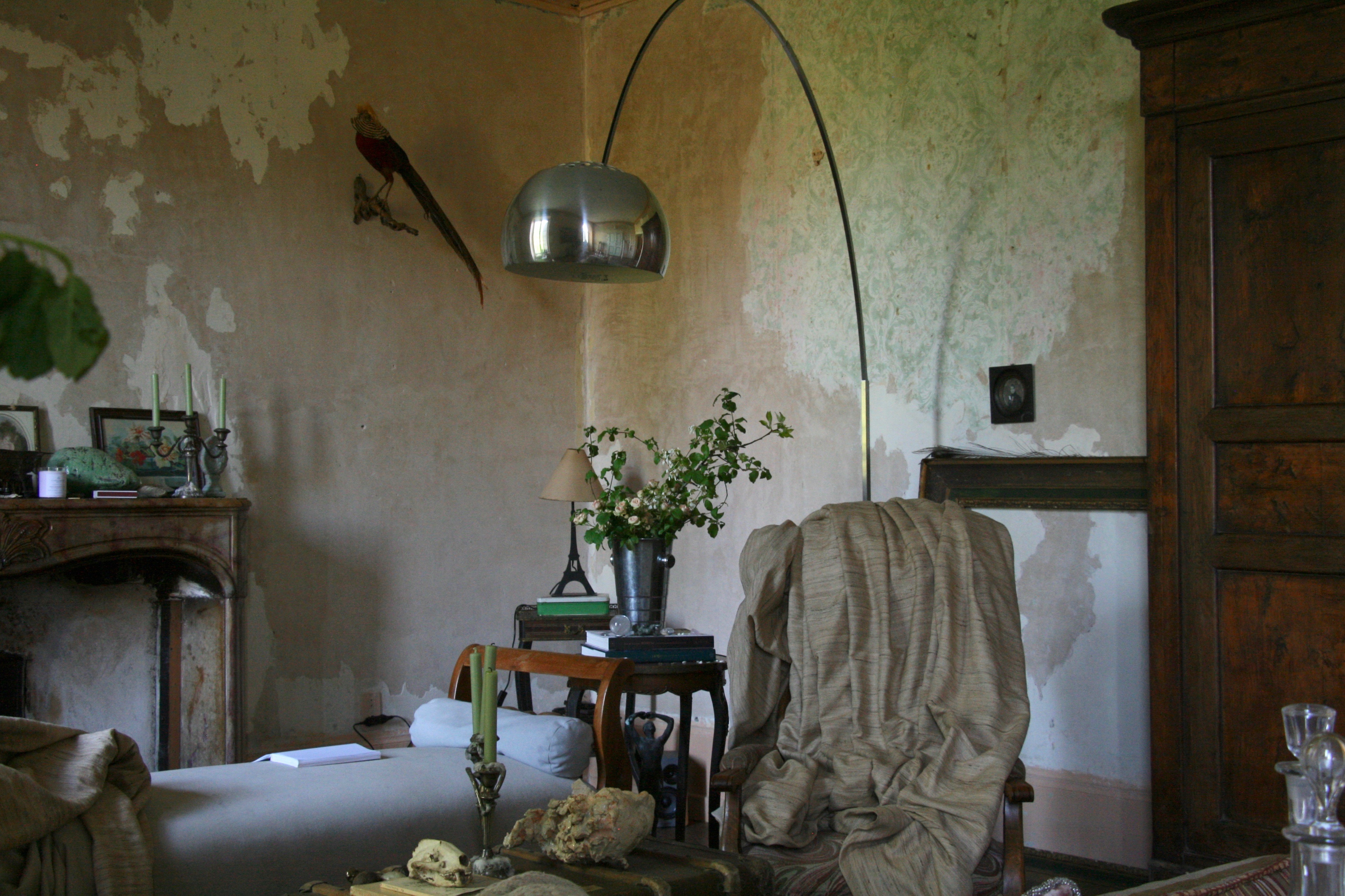 Also the drawing room, on a very other note, I’ve made some pictures for you now the furniture is in! I’m currently sewing the curtains and today we’ll get the big mirror I found through a very kind lady up on the mantle. Then I think that’s where we’ll leave it for the time being. We decided to keep the original plaster walls and some patches of the wall paper, creating a time-painted look rather than sleek newly painted walls. My husband thinks it’s a little wild but I rather like it!