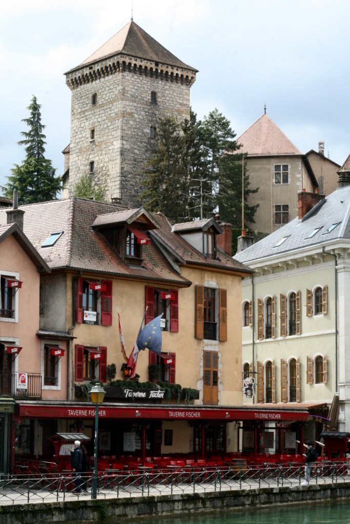 The streets of Annecy with an example of the kind of towers I’m talking about