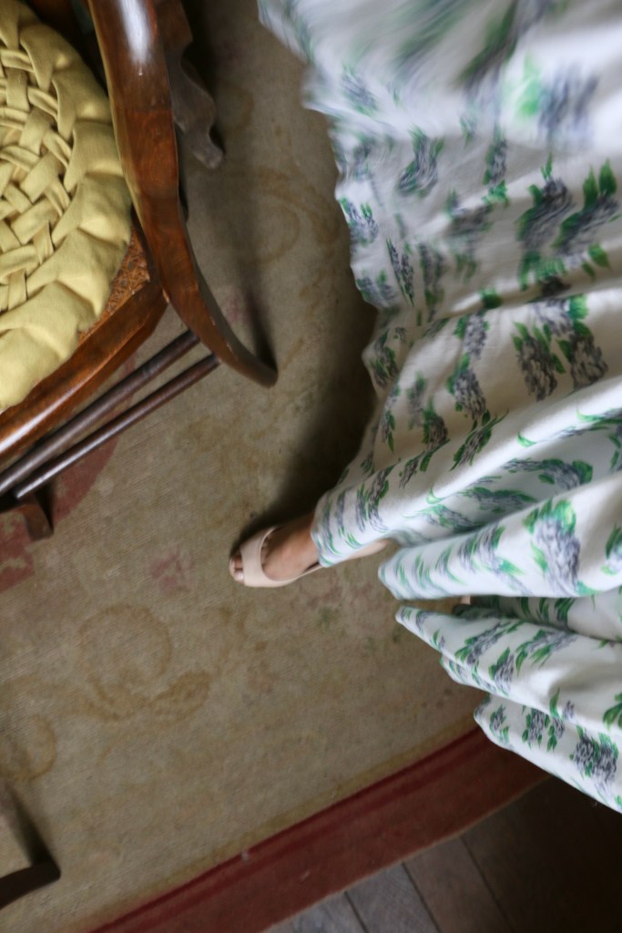Also inaugurating my new dress. Now I wanted to make this a short post but blast it here’s the story with the dress, it’s a nice one. A couple of weeks ago I stumbled across a very kind lady who goes by the name of Rose, how wonderful is this, also very romantic, now Rose has been clearing out her parent’s farmstead, the house she grew up in, surrounded by the land that belonged with the house and the stables and all the animals and people in it. What a task. As it goes with clearing out a house and a life, the loft invariably is the last space to tackle, and right at the back, where the roof meets the floor, under a sheet of dust, there was a suitcase. Rose opened the suitcase and in it was a pile of neatly folded dresses, very old dresses, very fine dresses, dresses that once belonged to a very fine lady, a very beautiful lady presumably, for who would not look beautiful in such a dress. All so neatly folded and mothballs in between. They had been sitting silent for almost seventy years, encapsulated time. Dresses that tell a story (at this point I imagine the stir she caused in the tiny village, sauntering down Grande Rue, buying a cheeky millefeuille at the patisserie that she sure shared with her lucky husband after lunch). Of course it would be a shame to put them back into the oubliettes of the suitcase, but who would want them? Came along my humble self, who loves everything vintage, romantic and forgotten, and whose size, with a little insistence, incidentally matches that long gone lady. This one is my favourite. More to come.