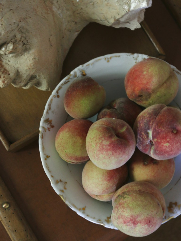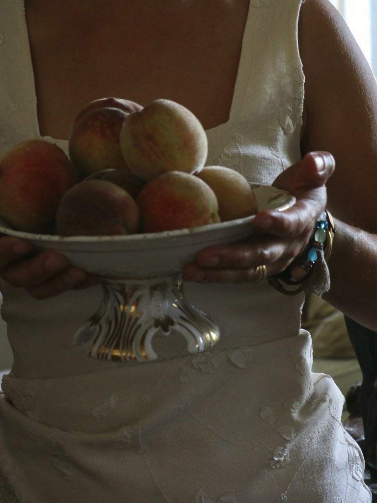 The fruit trees are laden this year, those hot summer days adding sweetness to their ripening bodies. Especially the peach tree, it is bearing such an abundance, its branches gracefully arching down so I can easily reach them, and I find nothing compares to biting through the sun warmed skin of a ripe peach, standing by the kitchen sink, its juices flowing down my chin.