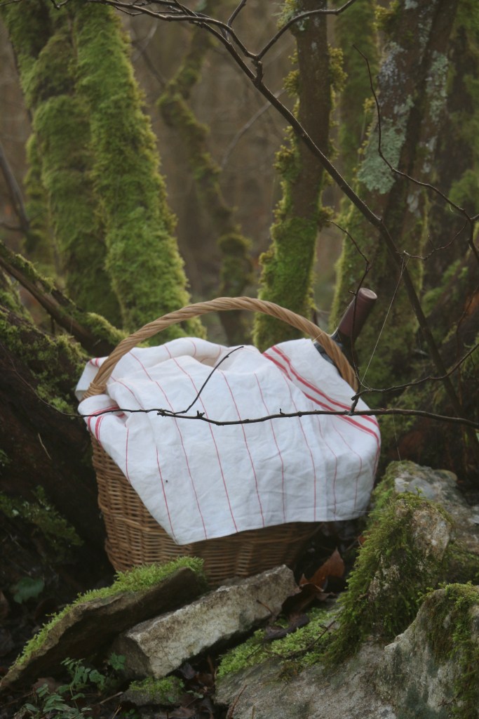 1. That cake sounds delicious and I will try to make it for New Years Day. The lichen on the trees, so mossy and vibrantly green, looks like Spring instead of winter. Little Red Cap, as she is called in some versions, carried a bottle of wine along with other goodies in her basket. Our kind of woman!