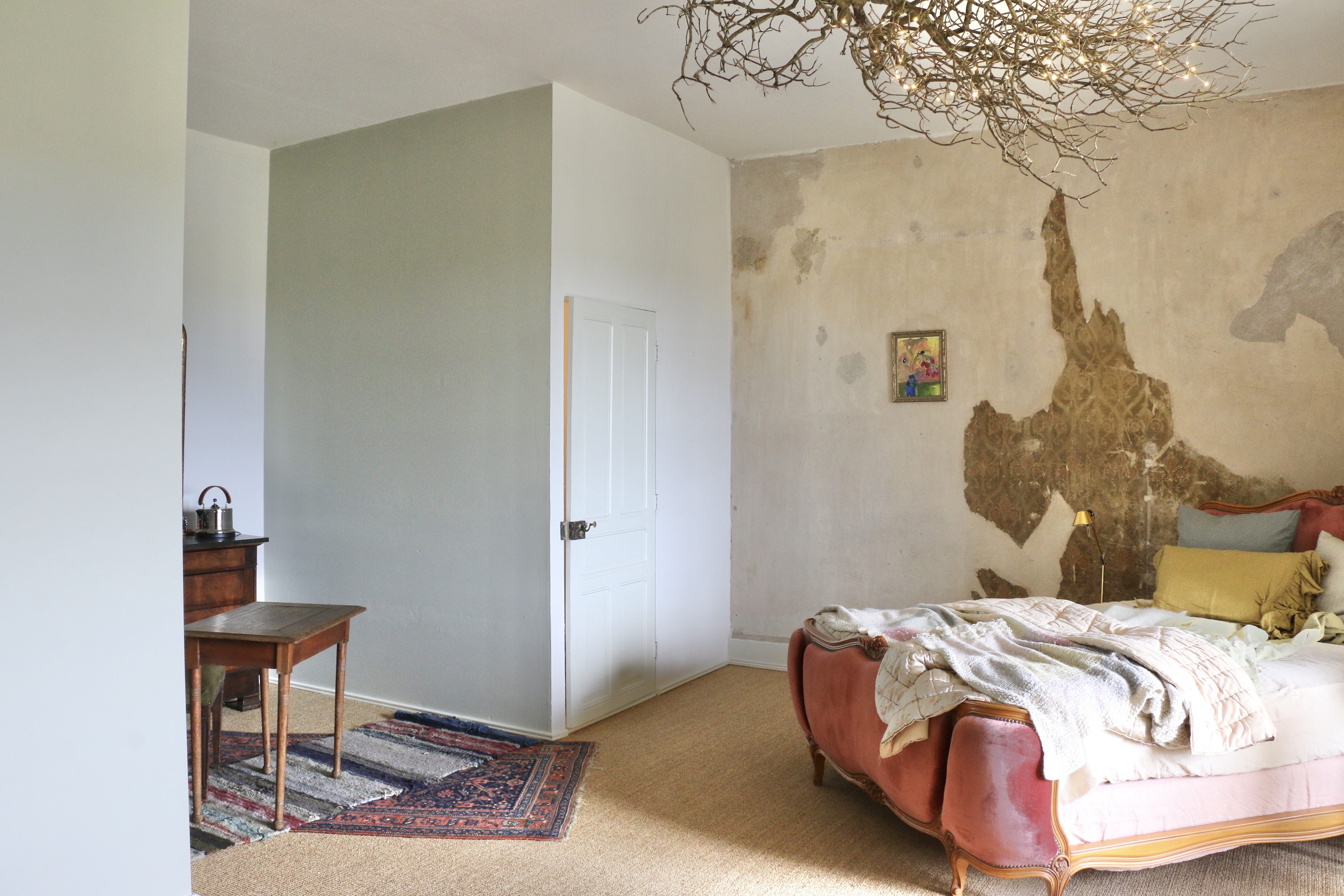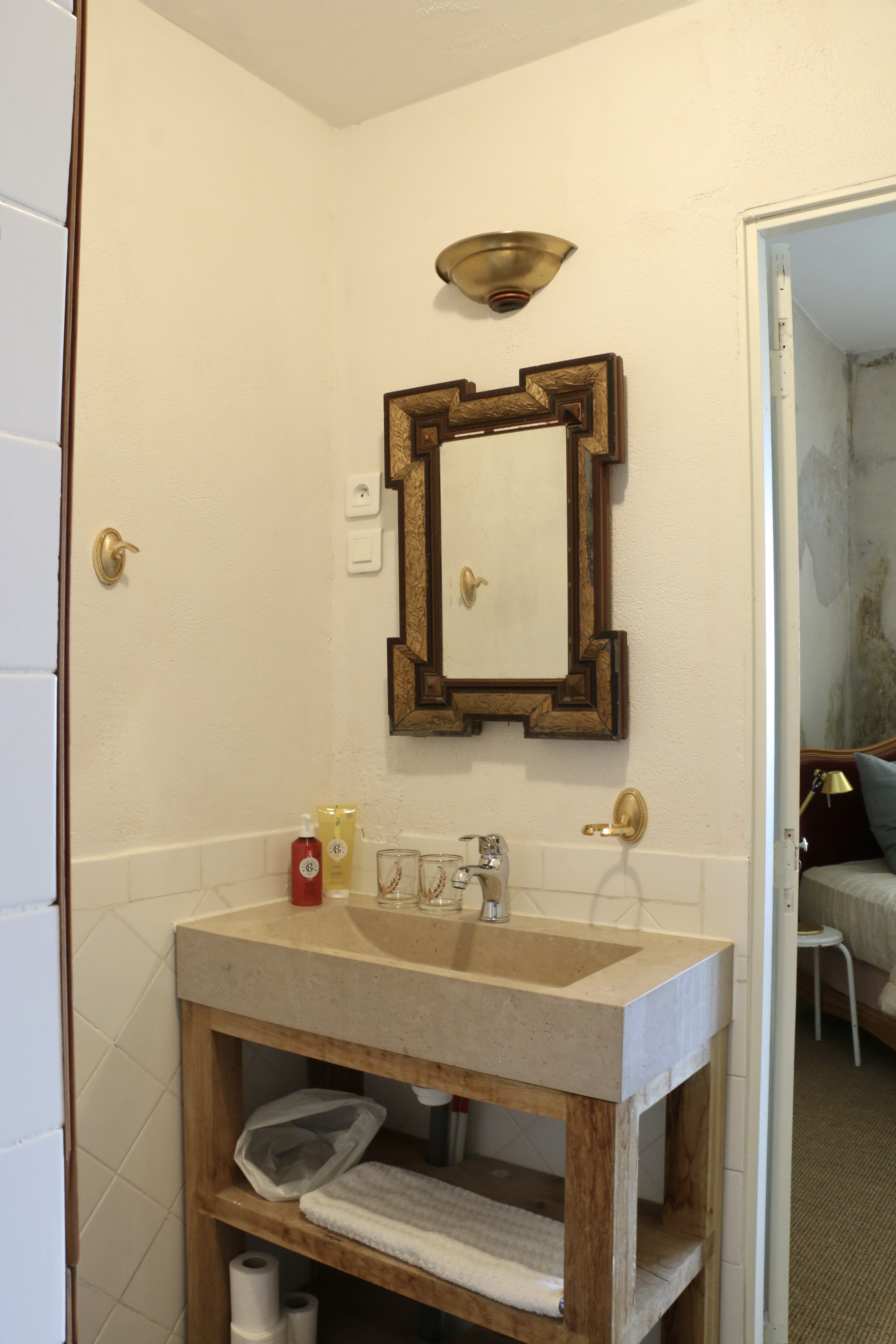 Sleeps 2 persons, one queen size bed. French linen and natural materials, comes with a small private bathroom with a toilet and shower. The room is on the top floor of the tower. Bear in mind that this is a historic building and no elevator is available.